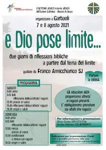L’amico gesuita che da oltre 20 anni periodicamente accompagna il cammino della nostra Diocesi con momenti di formazione spirituale organizzati dall’Azione Cattolica, sabato 7 e domenica 8 agosto sarà nuovamente a Garbaoli per una due giorni dal titolo “e Dio pose limite”.