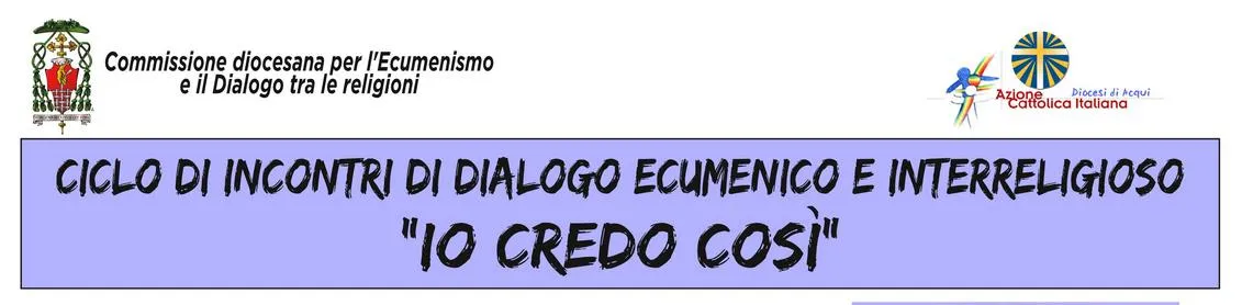 Per offrire a tutti la possibilità di riflettere sull’impegno ecumenico e per diffondere, all’interno delle nostre comunità, una mentalità ed un impegno in questo ambito, la Commissione diocesana per l’ecumenismo ed il dialogo tra le religioni, insieme all’Azione cattolica, propone a tutti un Ciclo di incontri di dialogo ecumenico e interreligioso. Essi avranno cadenza mensile e si svolgeranno tutti nei locali della parrocchia acquese di San Francesco (entrata dal portone della canonica: piazza San Francesco, 3).