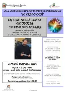 - venerdì 11 aprile: “io credo così: la fede nella Chiesa ortodossa” (a cura di padre Nicolae Suraru, parroco ortodosso di Canelli)