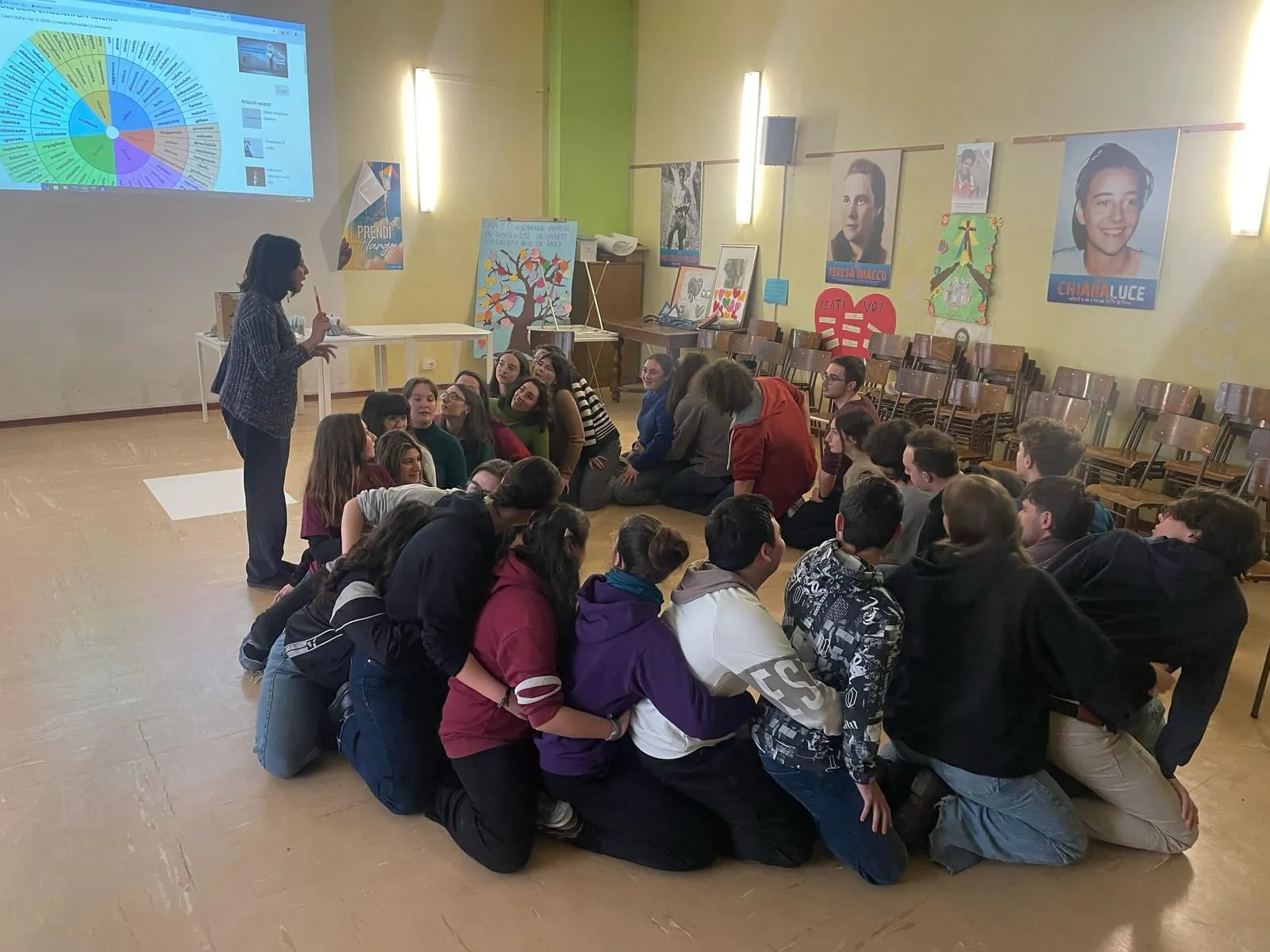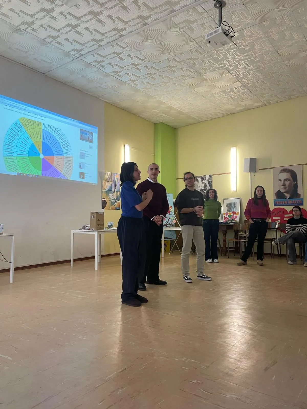 La spiegazione si è alternata a video, immagini, schemi e attività in cui le scelte prese dai ragazzi venivano poi analizzate nell’ottica della teoria del conflitto e della violenza, aiutando a capire come anche dinamiche di gruppo possano influenzare questi aspetti