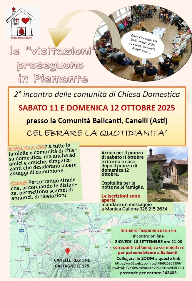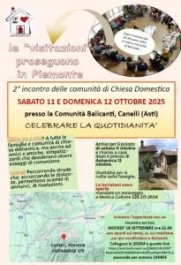 Sabato 11 e domenica 12 Ottobre 2025 alla comunità di famiglie di Balicanti arriveranno da tutto il Nord Italia i rappresentanti delle realtà che stanno coltivando una rete di riflessione e sensibilità rispetto alla concezione di una Chiesa domestica, che parte dall’essere Chiesa con piena dignità già nelle vicende di casa, quelle di tutti i giorni.