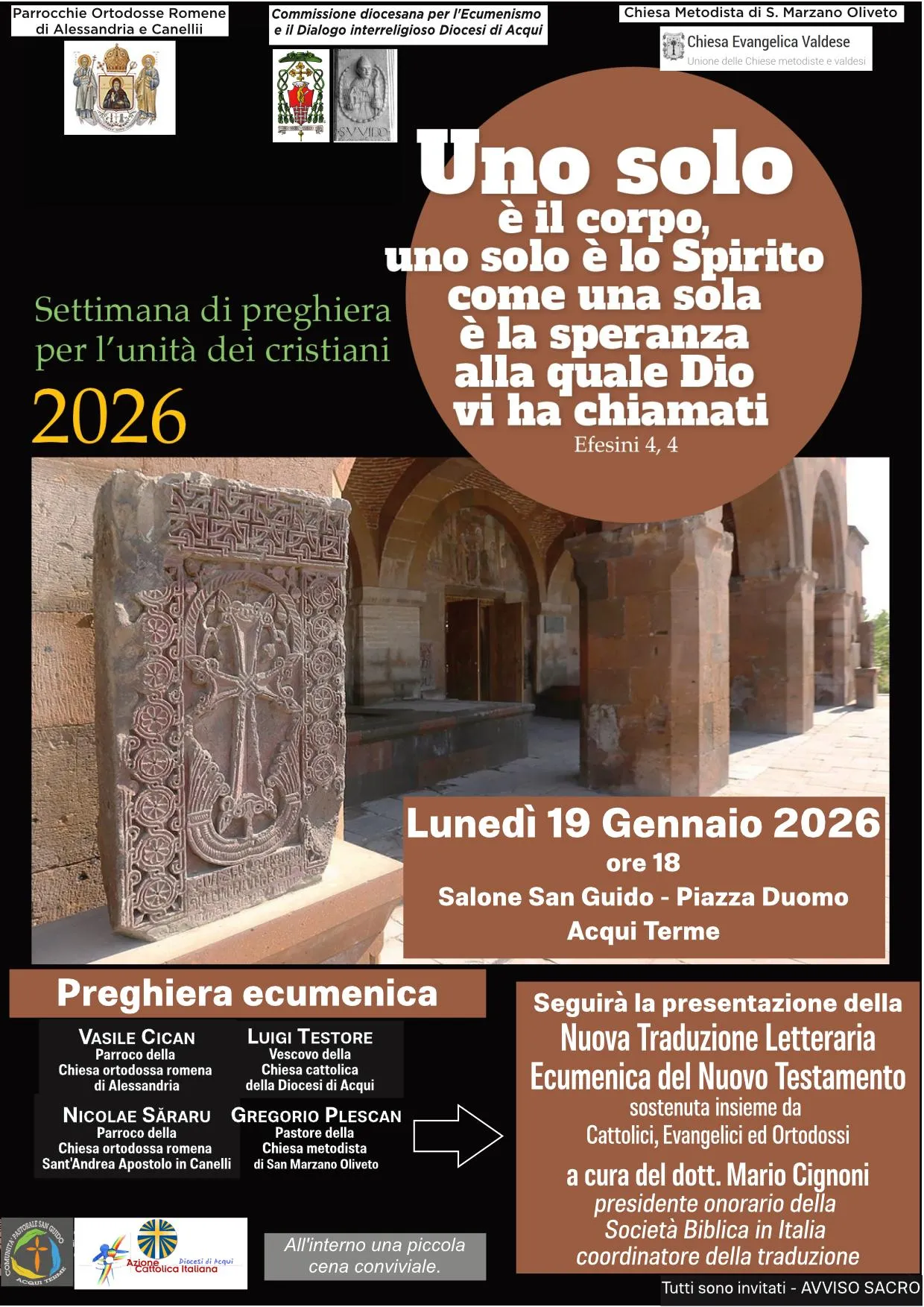 Dettaglio eventi Data: 19 Gennaio 2026 18:00 – 22:30 Luogo: Salone San Guido - Acqui Categorie: Ecumenica-interreligiosa