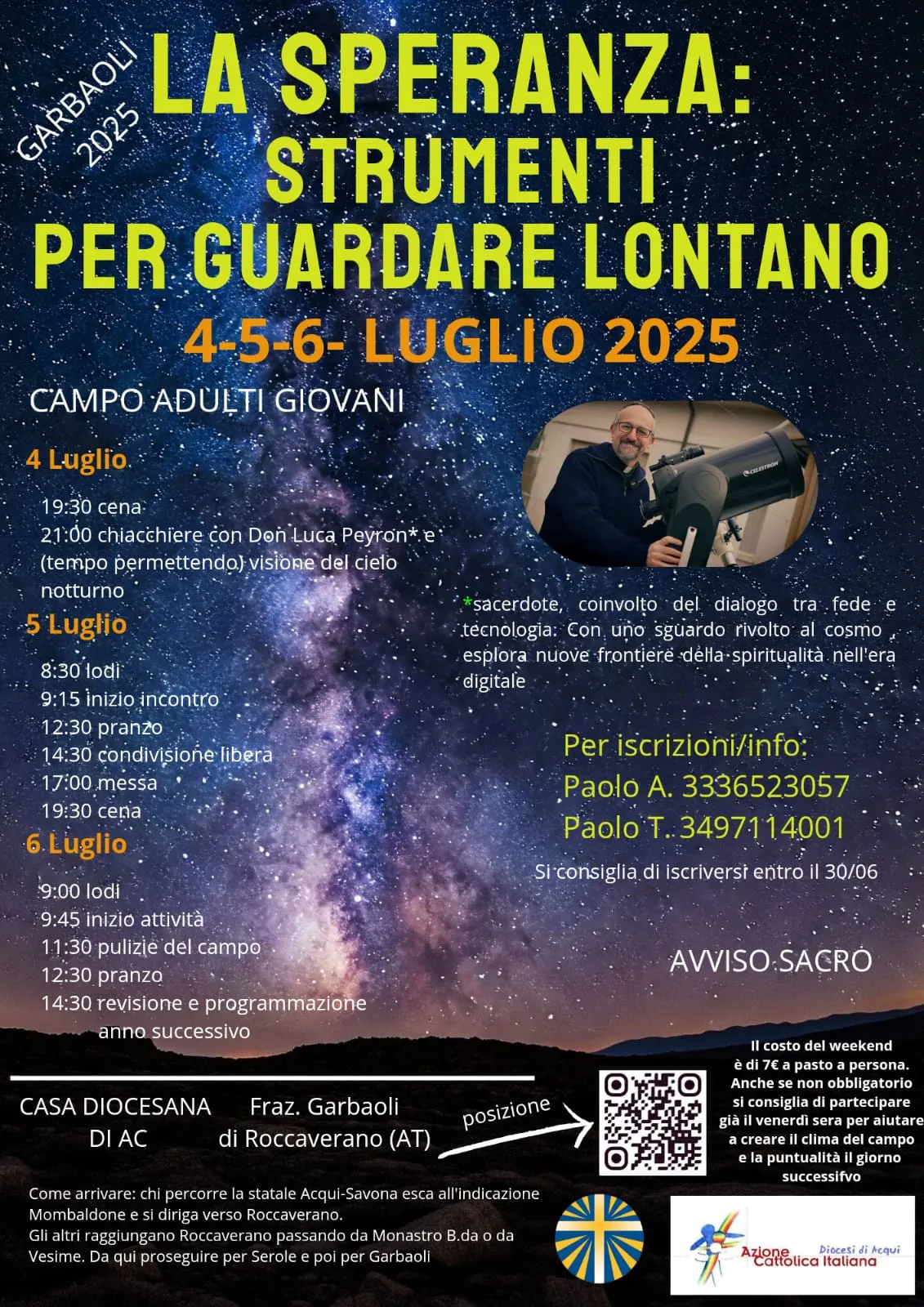 Dettaglio eventi Data: 4 Luglio 2025 19:30 – 6 Luglio 2025 17:30 Luogo: Garbaoli - casa AC Categorie: Garbaoli